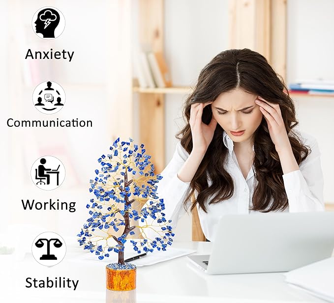 - ✨ LAPIS LAZULI GEMSTONE MONEY TREE: This Feng Shui Lapis Lazuli Gemstone Money Good Luck Tree of Life (Golden Wire) Size: 10-12 Inch, Handmade in INDIA, Money tree brings good luck, prosperity, provides positivity and enhances the power of your surroundings. Crystals can be used for healing or environmental enhancement, Gemstone Tree represents self-reflection, prosperity, calmness, balance, optimism, and creativity.