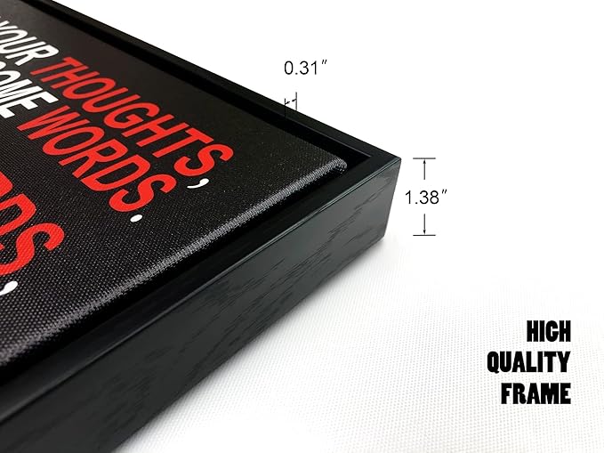 Pyradecor Black Framed Canvas Wall Art Watch Your Thoughts Motivational Classroom Poster Canvas Prints for Office Living Room Home Decorations