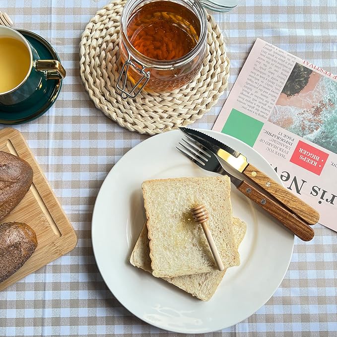 - The grooves on these wooden dippers help you easily collect and dispense honey from the jar.