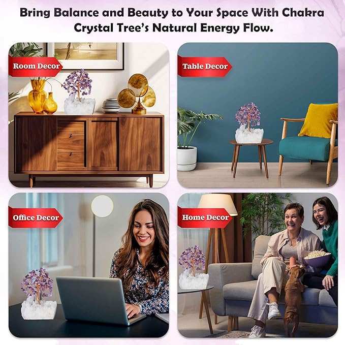 - ๐ก Stunning Crystal Decor For Home & Office : With its soothing purple tones and luminous white base, this crystal tree fits seamlessly into any bedroom decor, shelf decor, or bookshelf decor setup. Whether used as a meditation, spiritual centerpiece, or simply cute home decor, it enhances your space with both charm and purpose. Perfect for boho, modern, or mystical interiors, it also pairs well with turquoise decor and other natural elements to create a peaceful, balanced atmosphere.