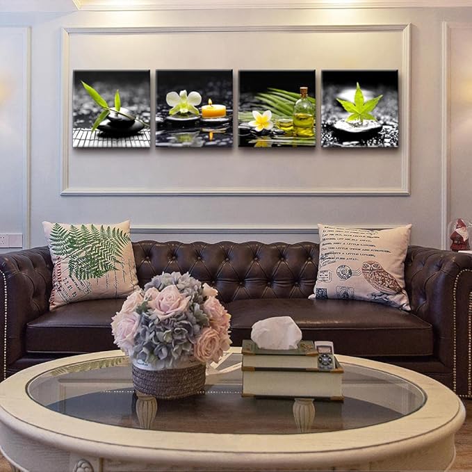 - ๐Easy to Hang: bathroom pictures each panel of zen decor canvas prints already stretched and framed, ready to hang. A strong hook is already fixed on each wooden inner frame for easy hanging out of box. edges are painted and each panel is wrapped by plastic bag with folded