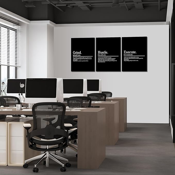 - 【Hustle Grind Execute Wall Art Set】Our positive canvas quote prints are already stretched on solid wooden frames and gallery wrapped, with included hooks and accessories for easy hanging.