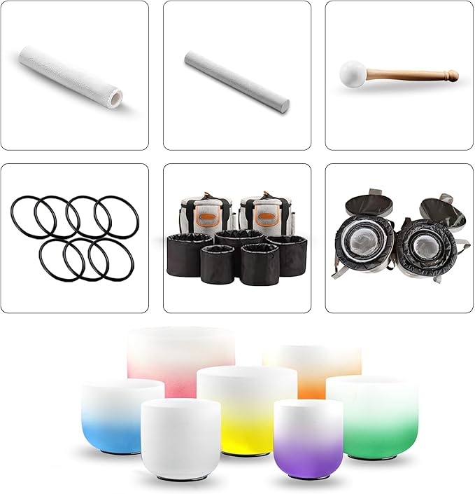 - Crafted from Pure Quartz Crystal:Made from 99.99% pure quartz, every singing bowl is chosen for clarity of tone and durability. Complete with padded cases, O-rings, and strikers, this set is both protective and portable—perfect for home practice, wellness studios, or travel.