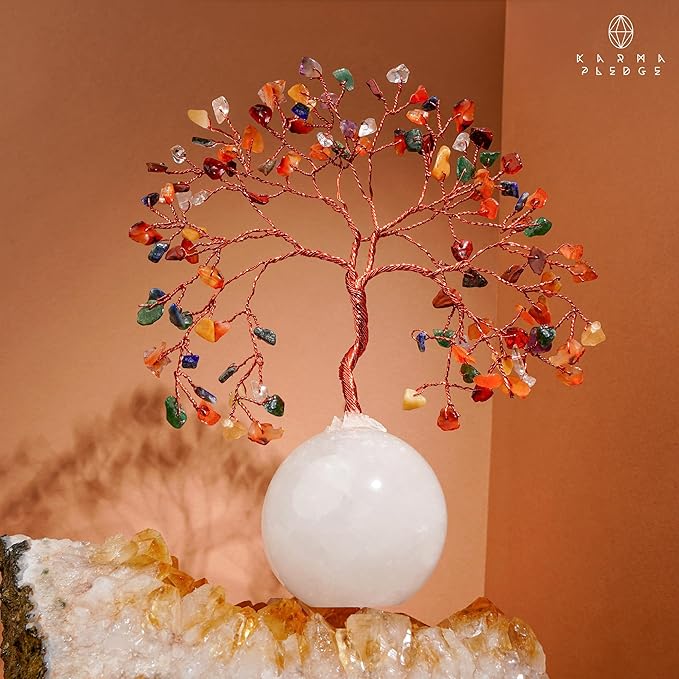 - HANDCRAFTED CHAKRA TREE: The KARMAPLEDGE Handcrafted 7 Chakra Healing Crystal Bonsai Tree is a meticulously crafted piece of art, featuring seven different chakra crystals in the form of a stunning bonsai tree. Each tree is uniquely handcrafted, adding an exquisite touch to your home or office decor.