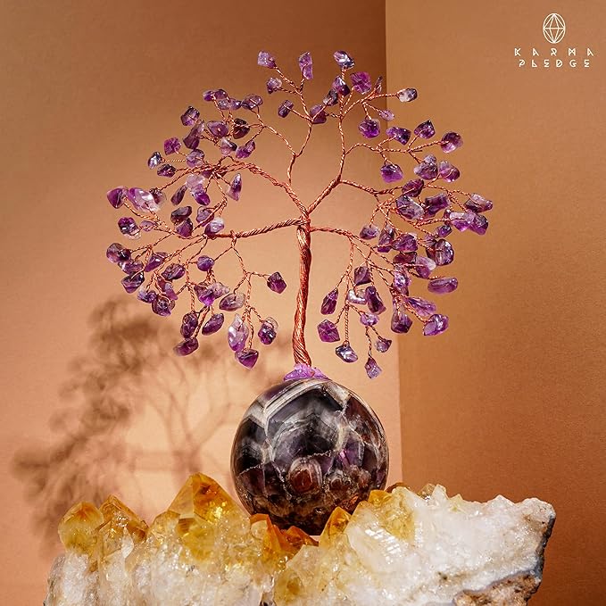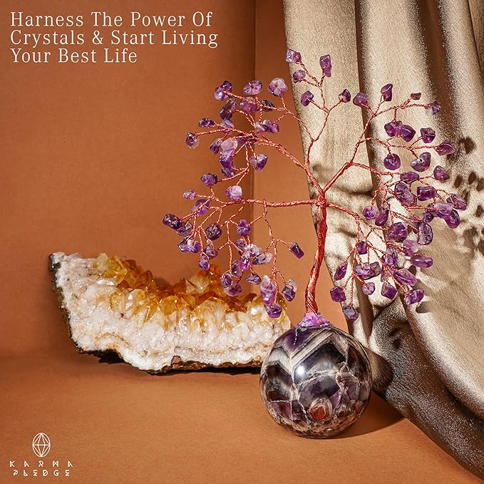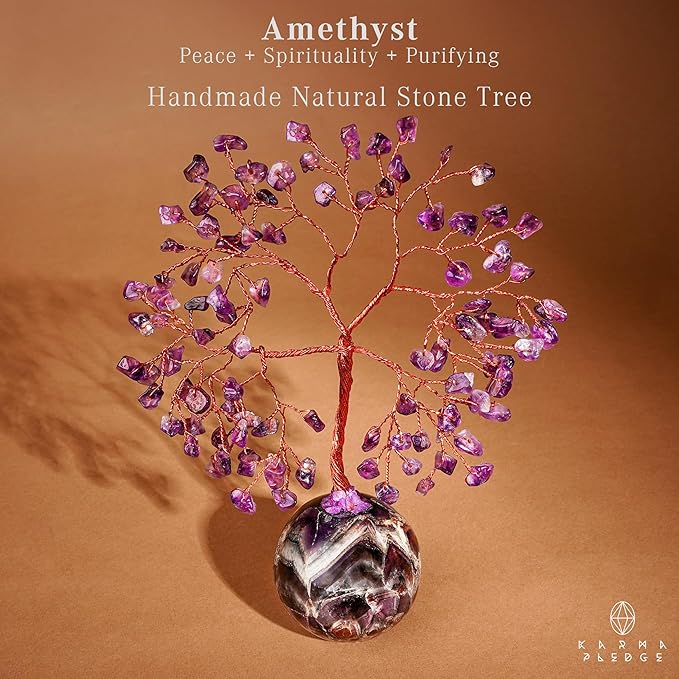 - AMETHYST CRYSTAL TREE: This tree has a home décor piece of natural handmade art with its stunning beauty and properties. this unique crystal tree combines the amethyst gemstones with the charm of a delicate tree structure that connects you to the profound power of nature and the universe.