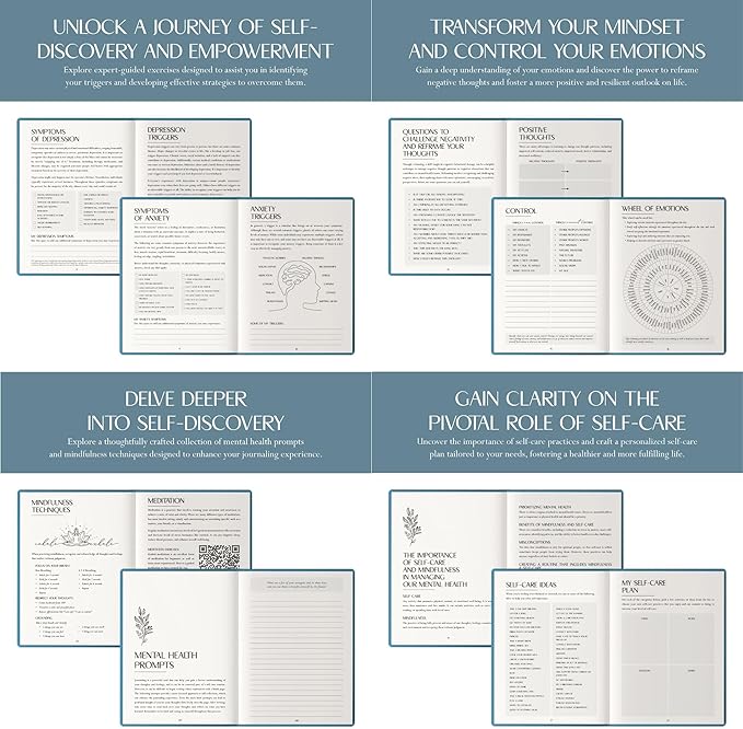 - π MENTAL HEALTH JOURNAL: This guided journal covers a structured 6-month period, offering tools and exercises tailored for your mental health exploration. Find peace, reflect on your feelings, and manage symptoms through self-care and mindfulness. Plus, enjoy a free guided audio meditation by scanning the included QR code in this wellness journal.
