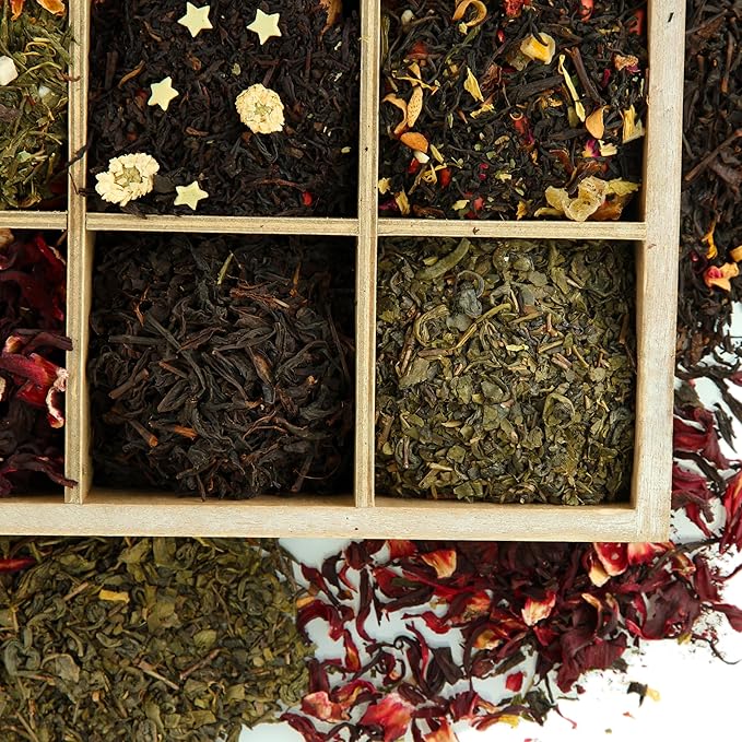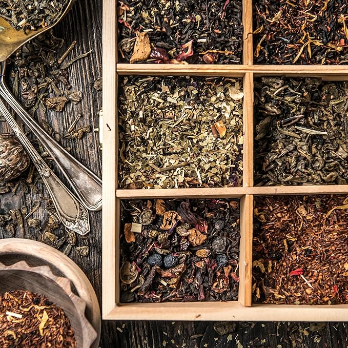 • Big Spacious Compartments - Tea bags come in different shapes and sizes. Our wooden boxes have removable - oversized - slots to fit everything in your tea collection with easy browsing. You can keep bagged tea, loose leaf, matcha, and accessories in the cubbies. Overall Outside Dimensions: 11.1” x 8.1" x 4.2”