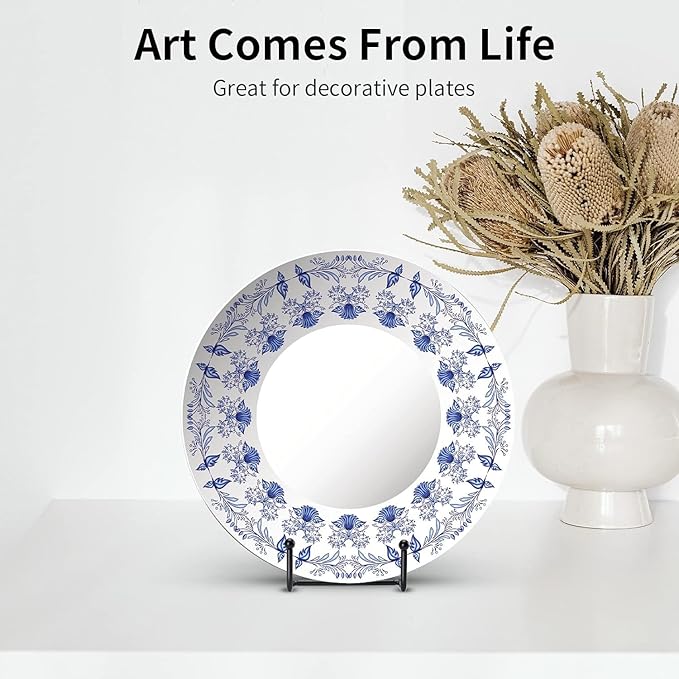 - Premium Quality Plate Stand -- Our display stand is 100% made of premium quality iron which won't be easy to bend backwards or falling down easily. They are robust and securely fasten your plates bowl, plaque, or albums. No need to worry about if they will fall and break.