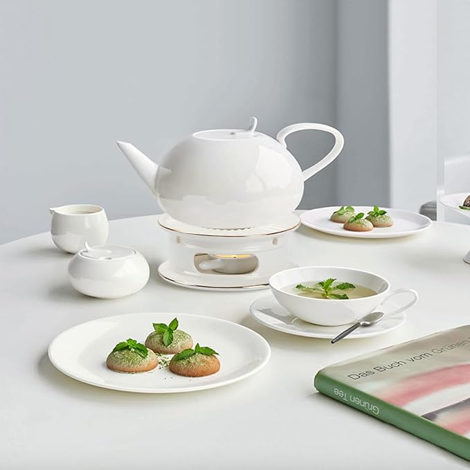- [ Elegant Design ] The tea warmer is made of high-quality exquisite white porcelain, durable and strong load-bearing capacity. Simple cream/ white design with gold trim completes the look for a luxurious appearance not matched by other warmers.