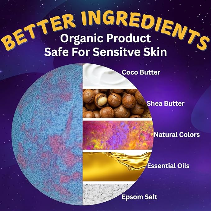 - Collect all 20 Toys - These organic space bathbombs for kids have 20 toys to collect with 6 toys hidden in each cosmic bath set. Feel the excitement collecting all. A perfect kid safe bath bombs organic gift set. Each is individually wrapped bath bombs with fun packaging.