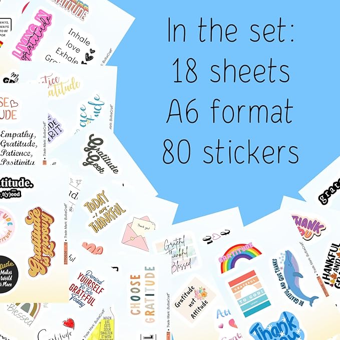 - STICKER SHEETS - gratitude sticker pack contains several sheets. Sticker sheets are less likely to get damaged or bent compared to loose, cut-out stickers.