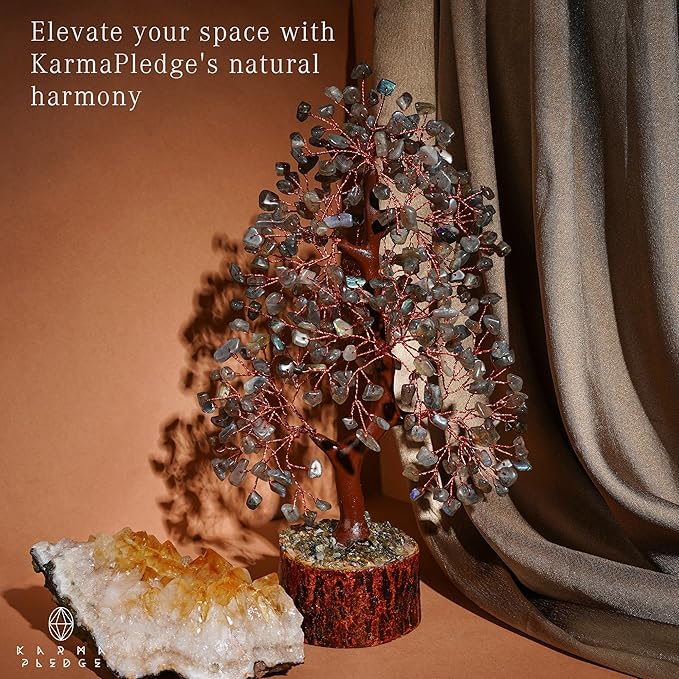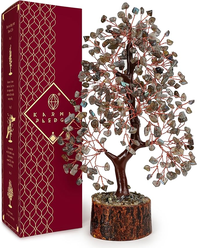 Crystal Tree of Life Labradorite Healing Crystal Trees for Home & Office Decoration, Handmade Bonsai Trees for Positive Energy, Money, Good Luck, Christmas Decor, Birthday Gifts for Women, Mom