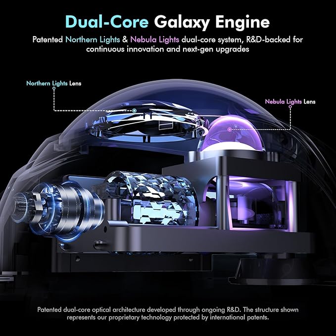 - Immerse Yourself in a 5-in-1 Dual Galaxy Projector: Rossetta projector combines an advanced dual-lens star projector, color-changing aurora lights, a soft-glow nightlight, a Bluetooth speaker, and a white noise sound machine. Its dual optical lenses project a vibrant, layered cosmos of twinkling stars and sweeping northern lights with 58 light effects onto your walls and ceiling, instantly transforming any room into a breathtaking personal planetarium for daily relaxation and a romantic ambiance