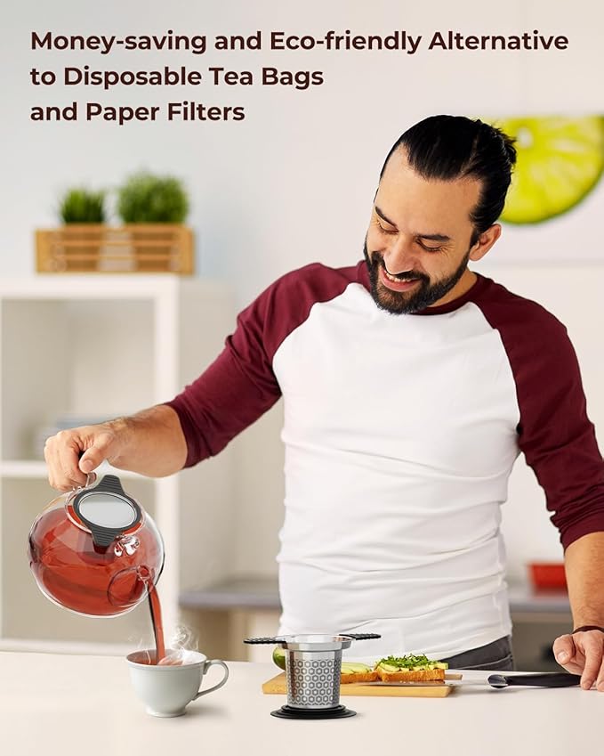 - High-Quality Materials: Made of 304 food-grade stainless steel and silicone, loose leaf tea steeper ensures no metallic taste on your tea or coffee and never rust for years of use. Money-saving and eco-friendly alternative to disposable tea bags and paper filters.