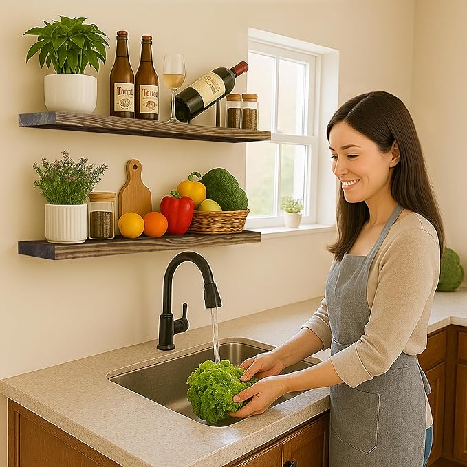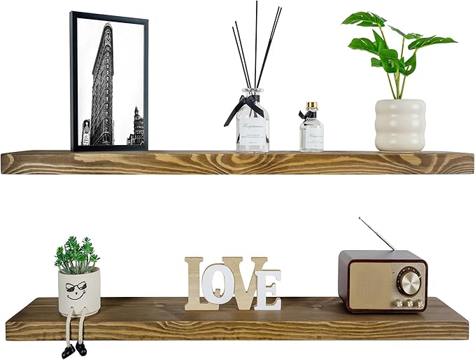 • EASY TO INSTALL: These floating shelves come with stainless steel galvanized invisible brackets, toggle bolts for drywall, and simple instructions to help you install them. These wall shelves are easy to assemble, requiring only two boards and the necessary screws and hardware. We also provide detailed instructions for quick and easy assembly!