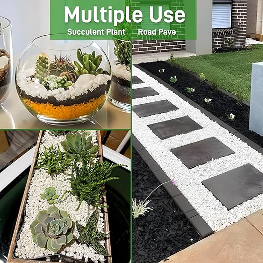 - 【Enhanced Aesthetic】White gravel are perfect for adorning your plants, concealing the soil in pots to enhance aesthetics, and bringing a refined elegance to your space.They also provide diversity and texture to garden pathways.