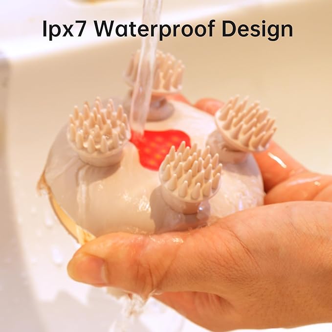 - 【 Waterproof & Skin-Friendly】Comfier IPX7 Waterproof Massager with ergonomic silicone handle reduces hand grip pressure and ensures a comfortable, non-slip grip. Enjoy the versatility of both wet and dry use, which aids in scalp cleansing .The detachable claws are easy to clean, while the soft silicone heads prevent hair from being pulled or tangled and are gentle on your skin. Note: To ensure longevity, avoid prolonged soaking. Do not immerse the massager in water for an extended period.