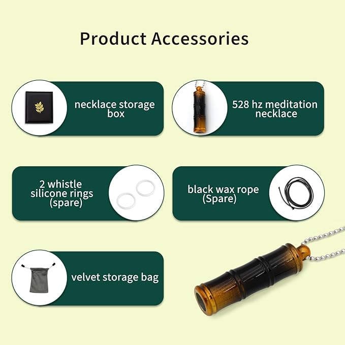 - ✅【YOU WILL RECEIVE】a 528 hz meditation necklace,a spare wax cord, 2 spare whistle siliconer rings,1 storage box,and the product manual; beautifully packaged, It would be a perfect Christmas gift, New Year gift,valentines gift for girlfriend or boyfriend, husband or wife, a wonderful birthday gift for friend, classmate, family, and so on, it would bring a clear and nice sound to all your families, even your cute pets.