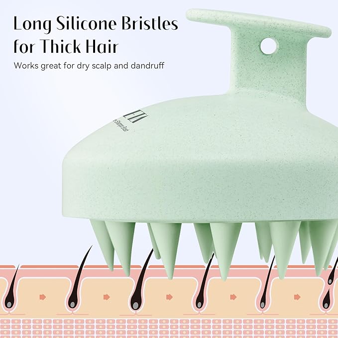 - Wheat Straw Design: HEETA shampoo brush is crafted from natural wheat straw and soft silicone bristles, and will not cause harm to the human body and nature. It’s an excellent alternative to ordinary plastic materials and helps reduce plastic waste