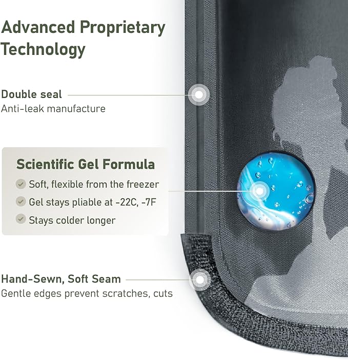 - COLDER FOR LONGER - Our unique proprietary gel does not freeze solid like water or other gel packs. Staying flexible at sub-zero temperatures, our gel ice packs reusable stay pliable and with more gel than other packs, are colder for up to twice as long, providing better pain relief for muscles, joints, and tendons.