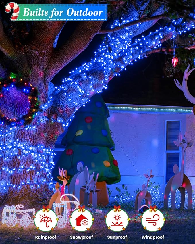 • Safety-First & Waterproof Design: Our Christmas tree lights operate on a 29V low-voltage, minimizing the risk of electric shocks, while ensuring they stay cool to the touch even after hours of use. It makes the fairy lights perfect for homes with children and pets, allowing you to create a festive atmosphere with peace of mind. With an IP44 waterproof rating, these Christmas string lights are built to withstand rain, snow, and various weather conditions (Note: The adapter is NOT waterproof)