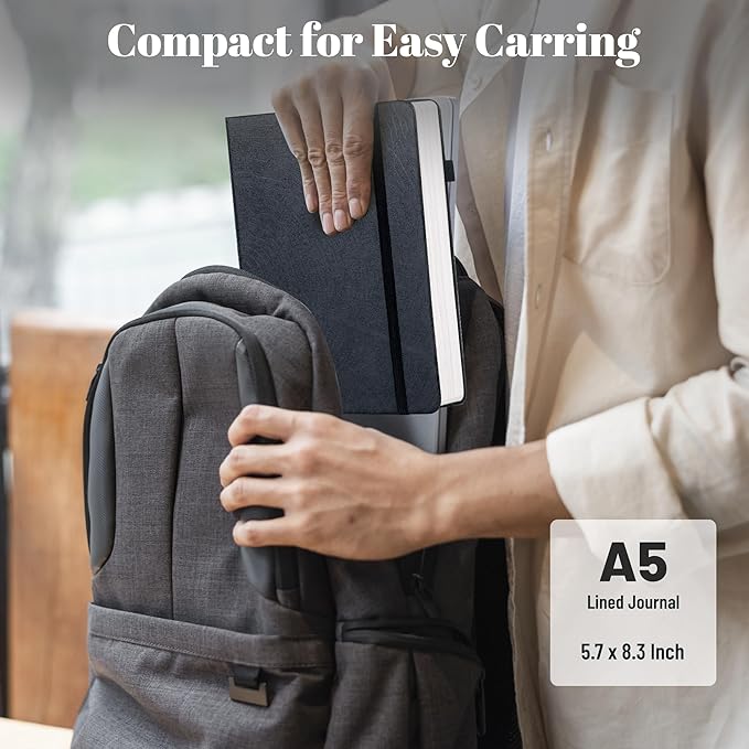 - ๐๐๐ซ๐ฌ๐๐ญ๐ข๐ฅ๐ ๐๐ฌ๐: This A5 notebook is ideal for office, school and home use, and is a great gift choice for women, men, business executives, college, students and people in many other fields. This 5.7 x 8.3 inch journal can be carried around in a bag and is also a good helper for your travel records, meeting all your needs