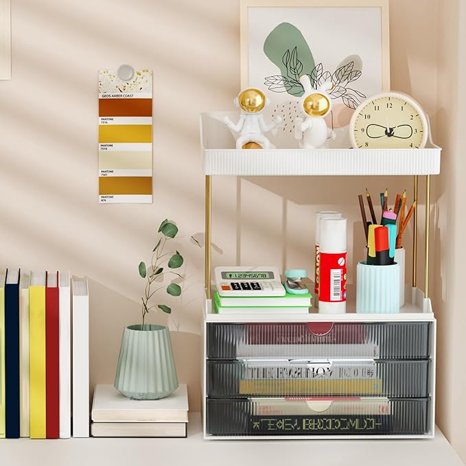 - Versatile Space-Saving Solution: This makeup organizer with drawers features a multifunctional design, ideal for storing makeup, jewelry, stationery, and other small items. And the drawer storage ensures convenient access and space-saving organization. Perfect for desktops, vanity tables, or storage cabinets, it’s an ideal choice to enhance both organization and aesthetics.This storage solution fits seamlessly into your bathroom, bedroom, study, kitchen, or living room.