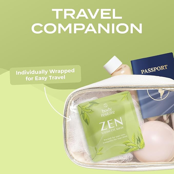 - Special Feature : A Spa-Like Experience at Home: Enjoy a calming, spa-like moment wherever you are. These eye masks are ideal for self-care routines, sleep support, or quick breaks to restore and relax naturally. Great for bridal, postpartum, or self-care gift boxes., Air-Activated, Self-Heating Comfort: Our steam eye masks are air-activated, gently self-heating, and promote blood circulation around the eyes. Enjoy up to 30 minutes of soothing warmth to relax, relieve eye strain, and melt away stress., Body Restore Steam Eye Mask 5 Pack - Self Heating Warm Compress For Eyes, Relaxation Gifts, Women and Men, Disposable Heating Pad For Sleep, Dry Eyes, Spa, Travel Essentials, Self Care - Green Tea, Ease Eye Strain and Stress: Relieve stress, eye fatigue, and tension with our steam eye masks. Perfect for teachers, college students, or anyone in need of a little TLC, including unique gifts for coworkers and busy parents., Travel-Friendly Relaxation: Compact and easy to use, our steam eye masks are travel essentials. Whether on a plane, in a hotel, or at home, they’re perfect for on-the-go relaxation and unwinding anytime, anywhere. A Spa-Like Experience at Home: Enjoy a calming, spa-like moment wherever you are. These eye masks are ideal for self-care routines, sleep support, or quick breaks to restore and relax naturally. Great for bridal, postpartum, or… See more