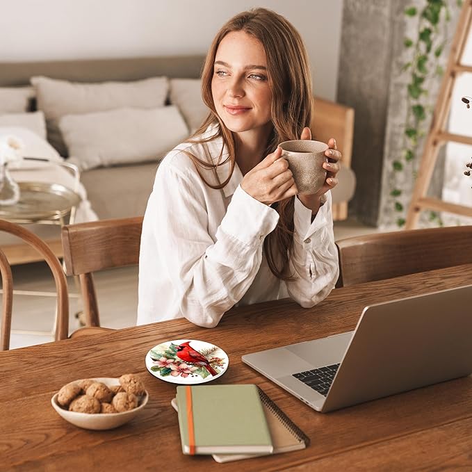 Cardinal Coasters Set of 4, Absorbent Ceramic Stone Coasters with Cork Base, Winter Christmas Home Decor, Ideal Gifts