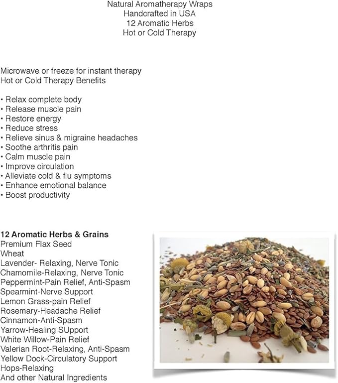 - ALL NATURAL - 100% Natural herbs and flax seed, Filled with 12 natural herbs and other aromatic ingredients - Made in the USA from soothing natural herbs like lavender and others.