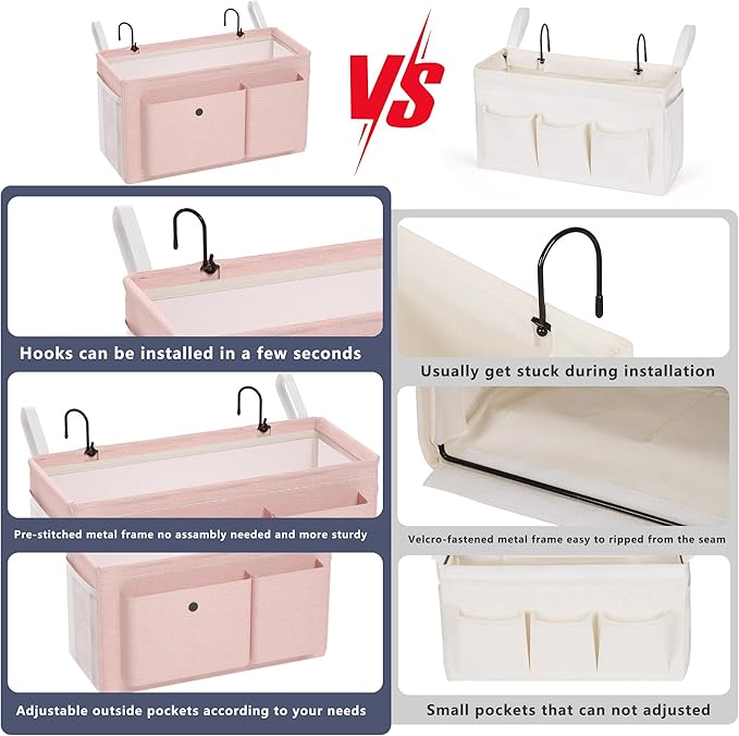 - Wide Application: The bed organizer hanging pocket keeps your stuff close by, accommodates laptop, remotes, books, water bottles, and more; ideal bedside pocket for home bed headboard, dorm bunk beds, hospital beds, and crib bed rails.