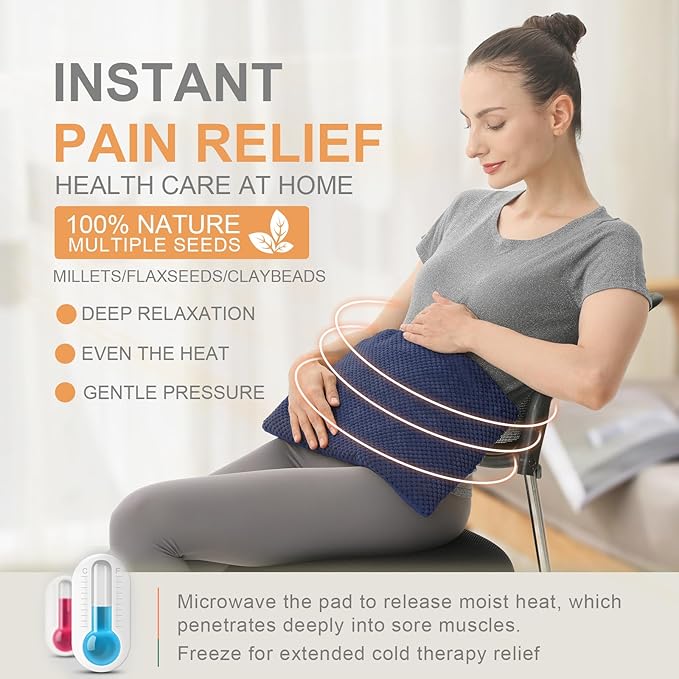 - KEEP WARM, FEEL GREAT: Our heat pack is generously filled with all-natural, unscented ingredients: millets, flaxseeds, and clay beads. Together, they deliver long-lasting heat perfect for soothing cramps, sore muscles, and stress. It's also a fantastic aid for menstrual discomfort