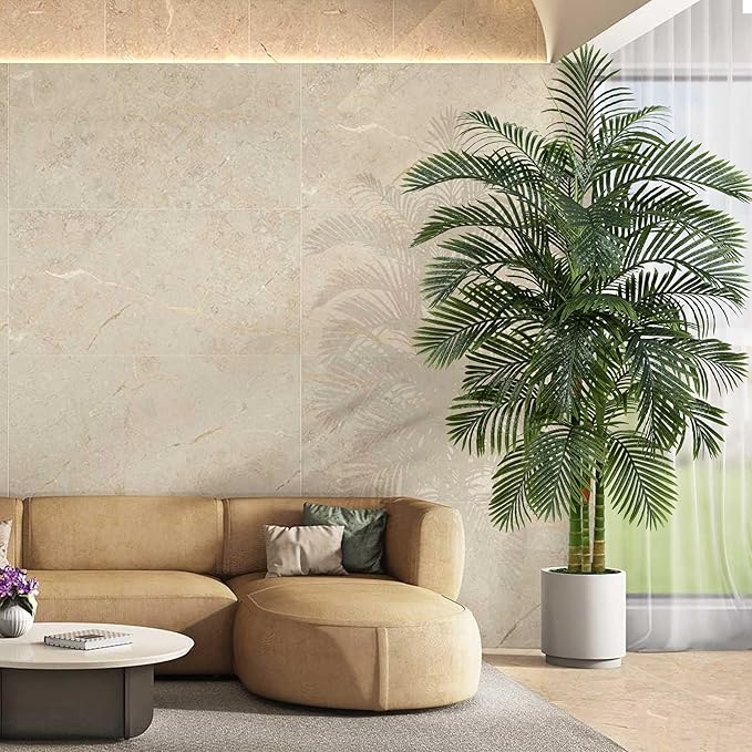 - Safe & Durable Materials: This highly realistic faux palm tree indoor is made of durable and premium polyester material, real touch, waterproof, eco-friendly and harmless. It's easy to clean, just use a duster. No special maintenance required. The tree decor leaves are thickened, more sturdy and durable. Carefully mimic the real texture of plants, under the light, it can better present the light and shadow effect of plants