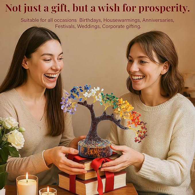 - Healing Crystals with Chakra Energy : Our Crystal Bonsai Tree is handcrafted with genuine gemstones, each representing one of the seven chakras. This Chakra Tree harmonizes energy flow, making it ideal for meditation, reiki, or aura cleansing. Use it as a healing crystal décor piece in your sacred corner, yoga studio, or desk. This tree enhances focus, balances chakras, and promotes positive vibrations while doubling as a meaningful present for women who love crystals.