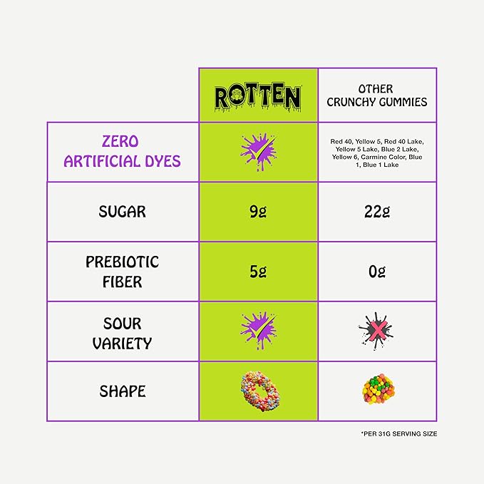![Rotten Sour Gummy Cruncheez - Low Sugar, Low Calorie, 5g Gut-Friendly Prebiotic Fiber, Gluten Free Candy, No Artificial Dyes - 5.3 oz Share Pack [2 Pack]](http://www.purebitesmarket.com/cdn/shop/files/81lhWTJQ91L._SX679.jpg?v=1760432870&width=1445)