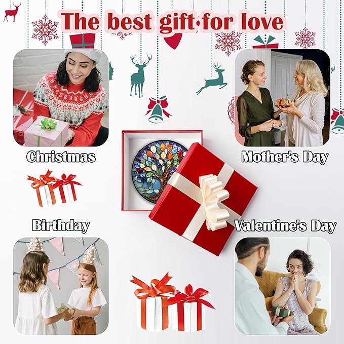 - Perfect Gift:This stained glass suncatchers is the perfect gift for family and friends, Thanksgiving Christmas gifts.This stained glass is known to be a symbol of peace, prosperity and love, add brilliant color in any space.