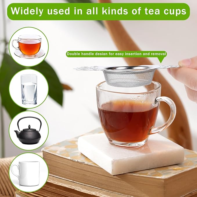 - 【Versatile Compatibility】Tea strainers Ideal fit over tea cup, mug or tea set (2.5 to 4 inch mouth), perfectly for smaller mouth cup/mug. Suitable for brewing loose leaf tea, herbal drinks,coffee grounds, and more.