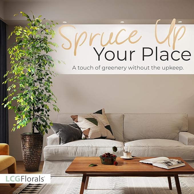 • REALISTIC DESIGN: Standing at an impressive 8FT tall, this large artificial Ficus Tree features a real-wood trunk and lifelike foliage, making it a perfect addition to your living room, office, or kitchen, adding a touch of nature without the upkeep.