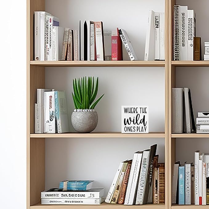 Where The Wild Ones Play, Playroom Decor Wooden Box Sign, Nursery Decor Gift for Nursery Bedroom Playroom Front Door Rustic Farmhouse Home Office Table Decorations Wood Block Plaque