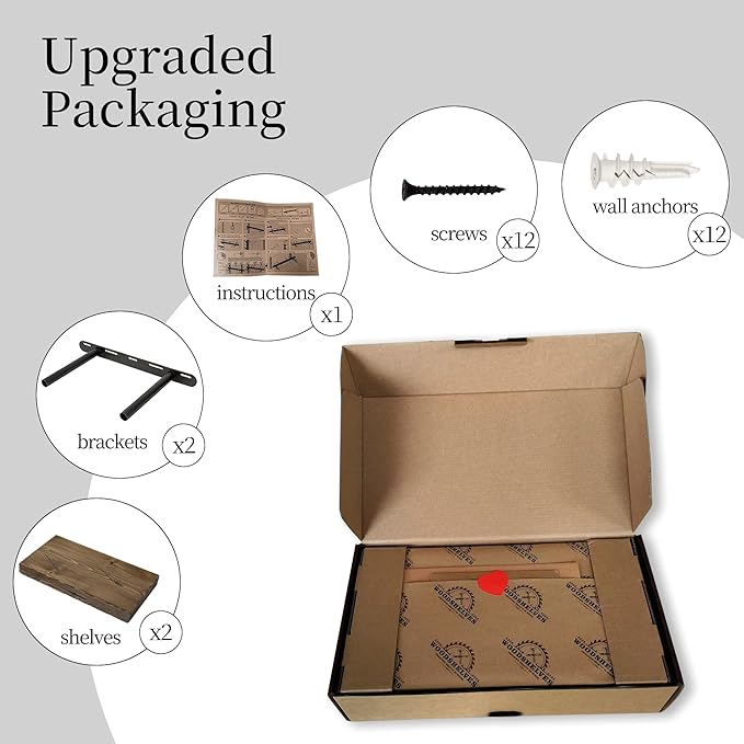- EASY TO INSTALL: These floating shelves come with stainless steel galvanized invisible brackets, toggle bolts for drywall, and simple instructions to help you install them. These wall shelves are easy to assemble, requiring only two boards and the necessary screws and hardware. We also provide detailed instructions for quick and easy assembly