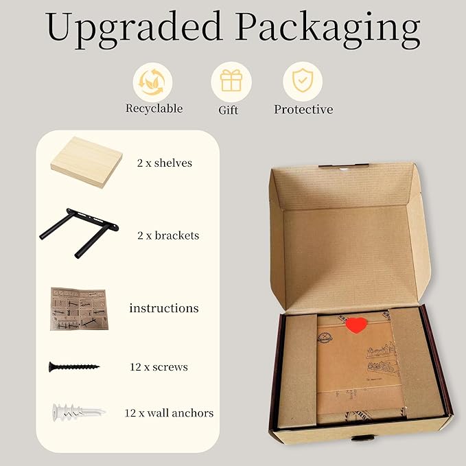 - ๐๐๐ฌ๐ฒ ๐๐จ ๐๐ง๐ฌ๐ญ๐๐ฅ๐ฅ: These floating shelves come with stainless steel galvanized invisible brackets, toggle bolts for drywall, and simple instructions to help you install them. These wall shelves are easy to assemble, requiring only two boards and the necessary screws and hardware. We also provide detailed instructions for quick and easy assembly