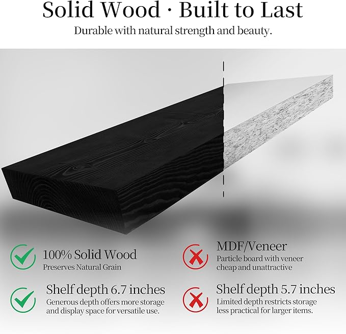 - ๐๐จ๐ฅ๐ข๐ ๐๐จ๐จ๐๐๐ง ๐ ๐ฅ๐จ๐๐ญ๐ข๐ง๐ ๐๐ก๐๐ฅ๐ฏ๐๐ฌ โ Crafted by hand from real pine, each floating shelf shows off unique wood knots and is stained to create a warm, rustic look that feels right at home