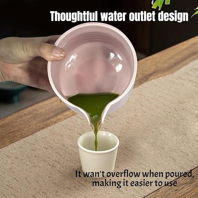 Matcha Whisk Set 6 pc Kit - Traditional Japanese Chasen, Bamboo Whisk Holder, Ceramic Bowl with Spout, Sifter & 2 pc Spoons - matcha kit set, Gift for Matcha Tea Lovers(Pink)