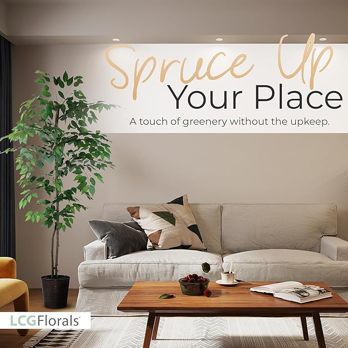 • REALISTIC DESIGN: Standing at an impressive 6FT tall, this large artificial Ficus Tree features a real-wood trunk and lifelike foliage, making it a perfect addition to your living room, office, or kitchen, adding a touch of nature without the upkeep.