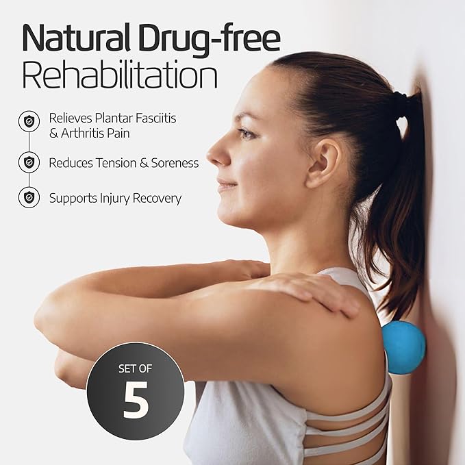 - 5-Piece Set: This set includes a silicone foot roller with large nodules for deep tissue massage and planters facetious relief, a lacrosse ball for trigger point therapy, a foam peanut roller for myofascial release and two PVC spike balls to help loosen tight muscles and offer pain relief
