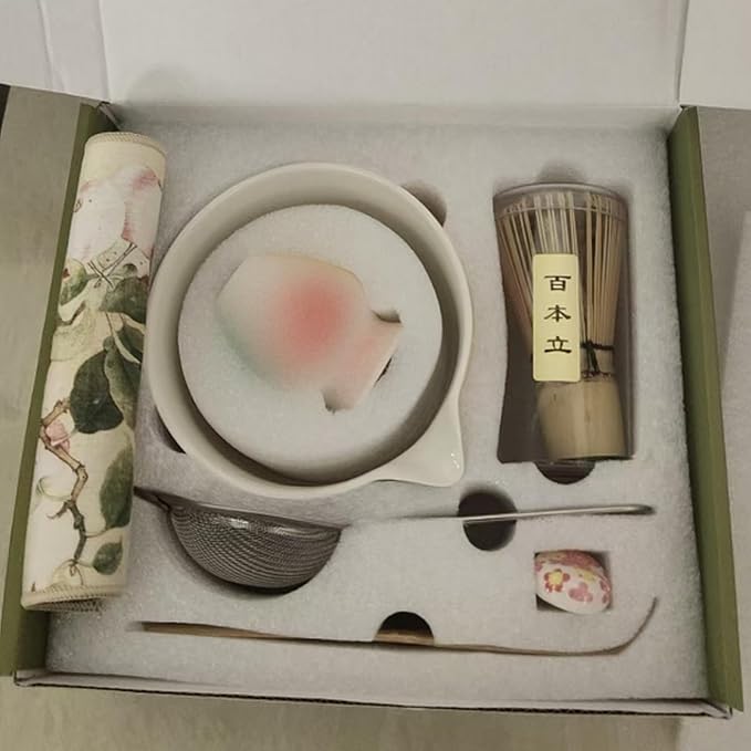- [Gift Box Packaging]: Scizorito Matcha 8-piece set, 1 tea whisk, 1 tea whisk stand, 1 Matcha bowl, 1 tea stirrer, 1 tea spoon, 1 powder sieve, 1 tea stirrer stand, 1 tea towel.