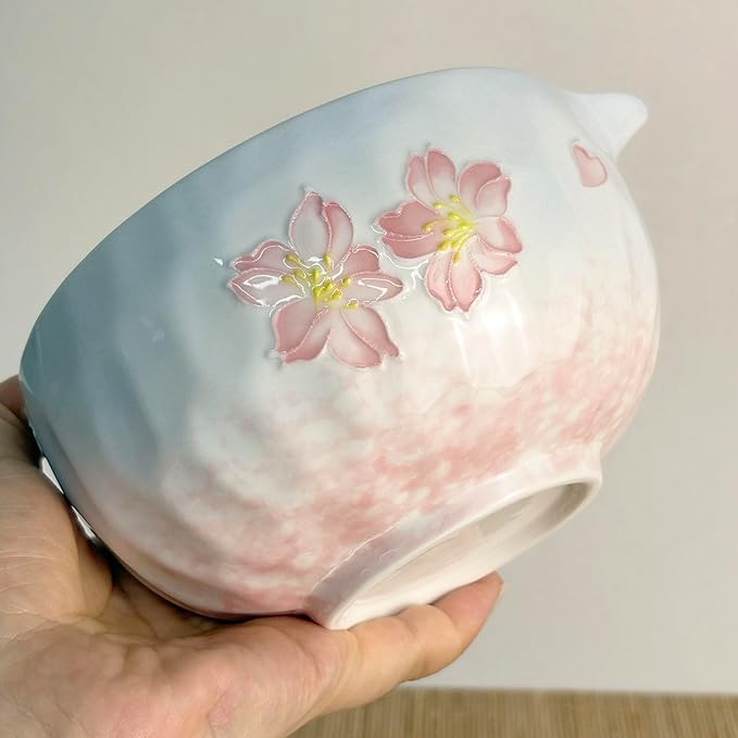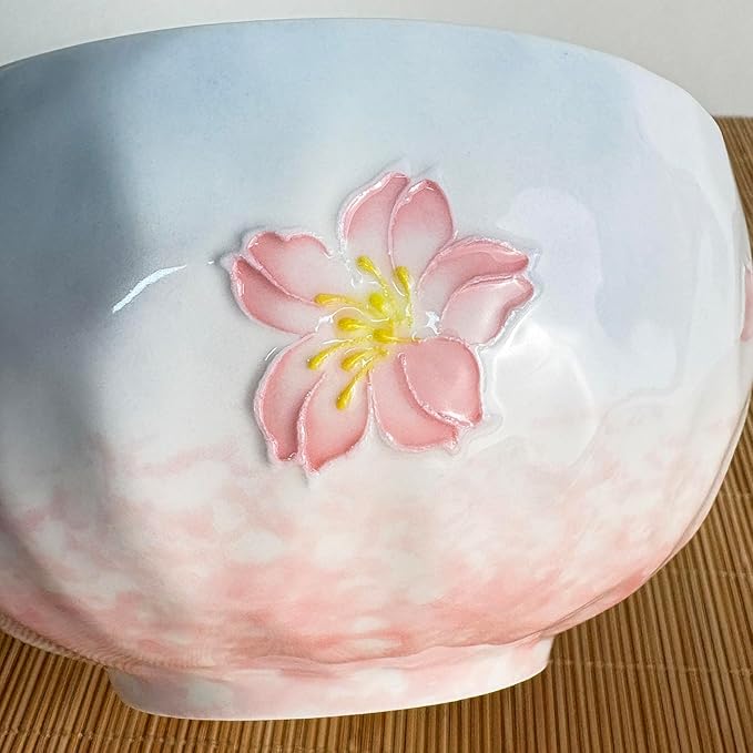 - 【ARTISTIC DESIGN】 This ceramic piece captures the essence of a spring day where blooming pink cherry blossoms meet a clear blue sky. The hammered texture represents the gentle breeze, while the embossed cherry blossoms add depth. The soft gradient from sky blue to blush pink freezes this serene moment. it holds the ethereal beauty of spring gently in your palms.
