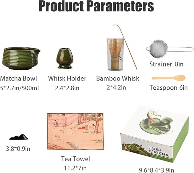 • 【Exquisite Matcha Whisk Set】The beautiful matcha kit includes : 1* Ceramic Bowl ( 500 ml/17 oz),1* Bamboo Whisk, 1* Bamboo Spoon , 1* Ceramic Whisk Holder,1* Ceramic Scoop Stand, 1* Tea Cloth,1* Matcha Powder Sifter and 1* Tea Scoop. This matcha set will bring joy to your leisure time. Meet your different usage requirements for making matcha beverages, pastries, and more.