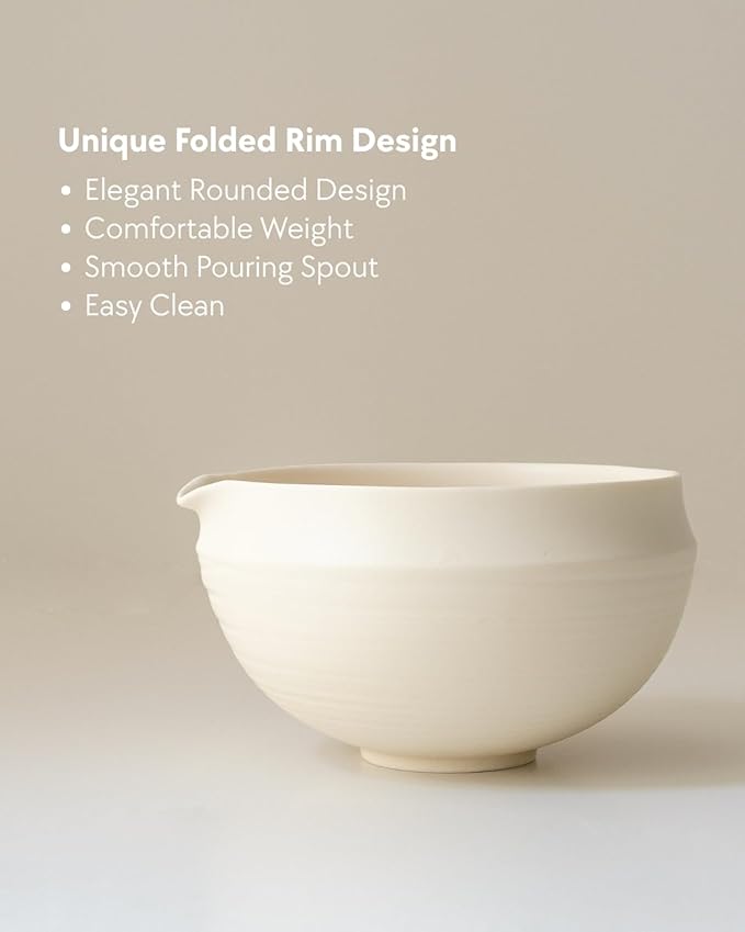• Modern Folded Rim Bowl – Designed with a gracefully folded rim for a refined modern touch. Its rounded, elegant form with a comfortable size and moderate weight rests naturally in your hand, making it easy to hold and use. A clean spout design ensures smooth pouring without messy spills.