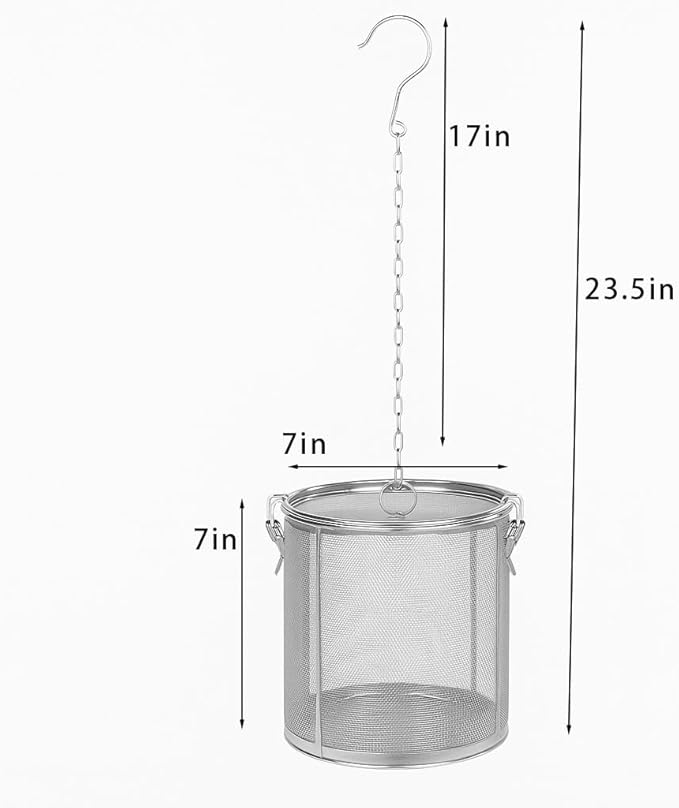 7 Inch Large Capacity Stainless Steel Seasoning Strainer and Spice Filter, Tea Mesh Infuser Strainer with Extended Chain, Reusable Herb Basket for Soup, Stew, Hot Pot, Broth